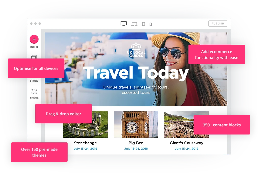 You don’t have to waste time manipulating content layouts. A collection of 350+ content blocks helps them build professional websites without any technical skills.